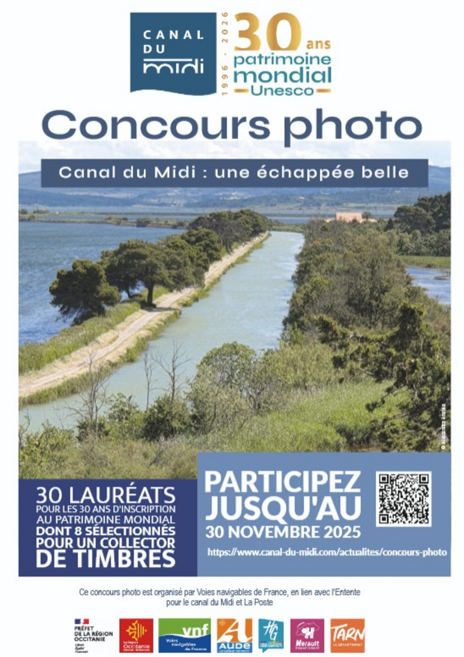 A l’occasion du 30e anniversaire de l’inscription du canal du Midi au patrimoine mondial de l’Unesco, un concours photo est organisé par Voies navigables de France en lien avec les membres de l’Entente pour le canal du Midi et La Poste.