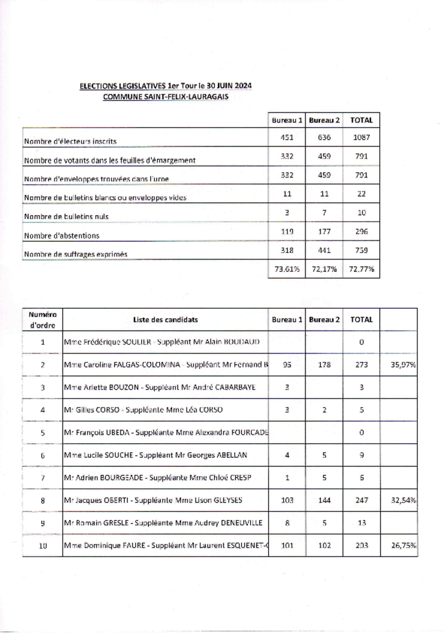 Législatives 1er tour Saint-Félix Lauragais