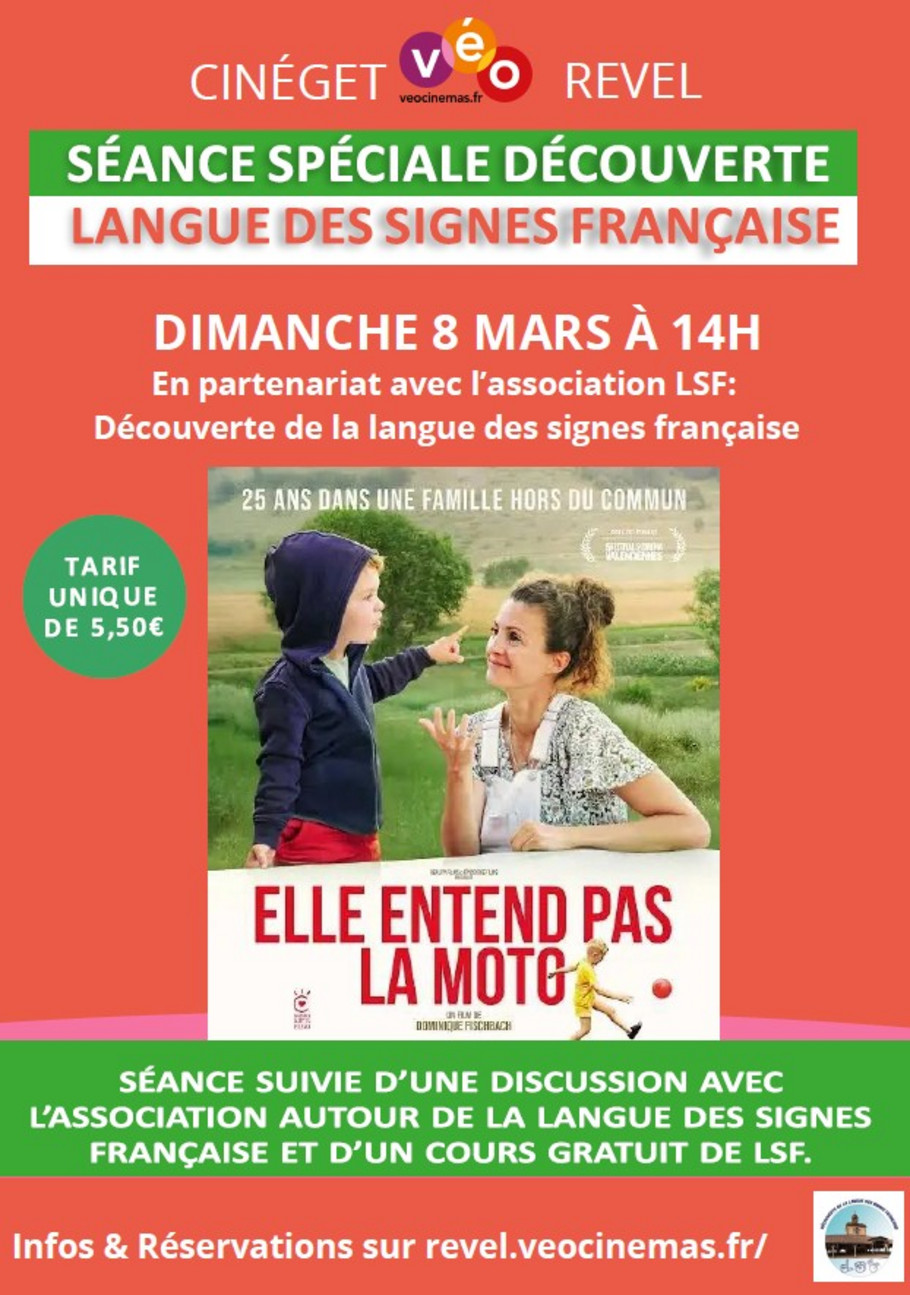 LANGUE DES SIGNES FRANCAISE Ajouter à mon Calendrier (.ics) Le 08/03/2026 Horaires A partir de 14h00 Lieu CinéGet Véo 31250 REVEL Retour